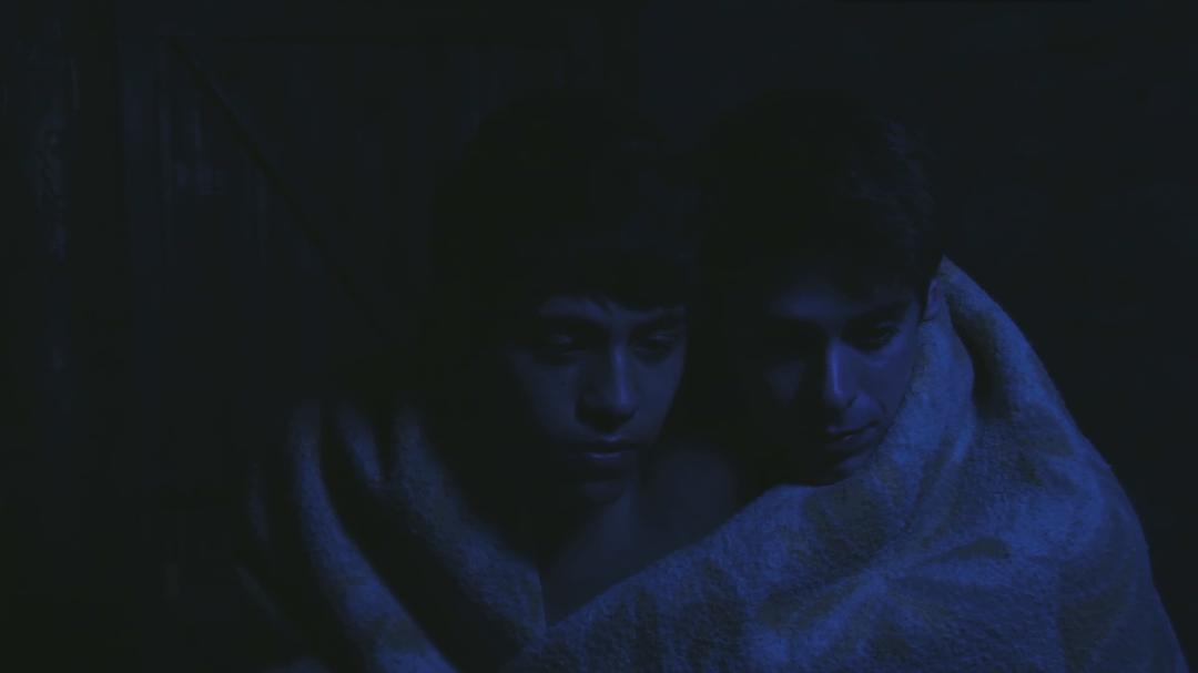 Two youths exploring an empty country house share a moment of uninhibited passion.